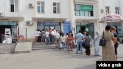 Каждый день у банкоматов выстраиваются длинные очереди, в которых сотрудники "Народного банка" письменно регистрируют всех желаюших снять деньги. Корреспондент Настоящего Времени записался в такую очередь. Присвоили номер триста двадцать. По самым скромным подсчетам ожидание составляет не менее половины рабочего дня. Но есть и такие, кто считает, что проблема раздута, и никаких проблем с обналичкой денег в Узбекистане нет.