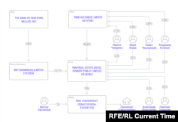 Сам TMM REAL ESTATE DEVELOPMENT PUBLIC LIMITED на 13,11% принадлежит британской BNY (NOMINEES) LIMITED, зарегистрированной в Лондоне. Она предлагает банковские и инвестиционные услуги и является дочерним предприятием нью-йоркского The Bank of New York Mellon, Inc. – крупнейшего в мире депозитарного банка. В BNY Mellon Настоящему Времени ответили, что лишь управляют активами от имени своих клиентов, но отказались комментировать вопросы, связанные с компанией "ТММ" и возможным нарушением санкций.